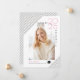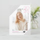 Modern lines class of 2025 graduate black and pink graduation photo announcement. An elegant design that showcases your photo, black stripes on the top left and bottom right corners, the year 2025 in pink and the word "Graduate". The back includes a frame with your wording and a black and white striped border.