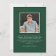 Announce your graduate’s success with this elegant Class of 2025 graduation announcement. Featuring a full-bleed vertical photo, this design highlights the graduate while showcasing "Class of 2025" in bold green and black serif and script lettering at the top for a modern yet timeless touch. Personalise the front with the graduate's name and school to make it uniquely special. The back includes a square photo with space for a custom message, offering room to share a personal note or additional details. Perfect for high school and college graduates, this announcement is a beautiful way to commemorate their achievement.