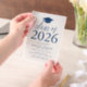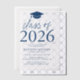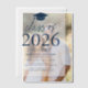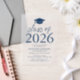 Celebrate your graduate’s milestone with these modern vellum graduation party invitations, featuring a graduation cap design and bold navy lettering that proudly showcases "Class of 2025" on a sheer vellum overlay. Designed for both high school and college graduations, these customisable invitations allow you to personalise the graduate’s name, school, and party details. With a trendy yet elegant design, these vellum graduation invitations create a sophisticated look that sets the tone for an unforgettable celebration while making a lasting impression on your guests.
