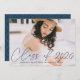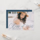 Invite guests to celebrate the grad with our stylish photo graduation invitations. The front of the graduation party invitations display the graduate's photo with "Class of 2025" in a navy modern calligraphy script overlay. Personalise the front of the modern graduation party invites by adding the graduate's name, school name, and graduation year. The invite reverses to display your graduation party details and a trendy navy and white dotted geometric pattern. The design is perfect for both high school and college graduates.