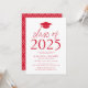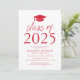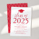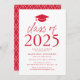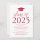 Invite guests to celebrate the grad with our modern class of 2025 graduation party invites. The invites feature a graduation cap at the top with "Class of 2025" displayed in red modern lettering. Personalise the invites by adding the graduate's name, school, and graduation party details. The trendy graduation party invites reverse to display a red and white trellis pattern.