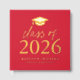 Celebrate the accomplishments of the Class of 2025 with this stylish square graduation guest book. Featuring a striking gold foil graduation cap at the top, paired with "Class of 2025" in bold gold foil lettering on a vibrant red background, this guest book exudes elegance and school spirit. Personalise the front with the graduate's name and school year for a unique touch. The spine is also customised with the graduate's name and graduation year, creating a memorable and cohesive design. The back of the guest book showcases the graduate's full-bleed square photo, adding a personal and sentimental element. Perfect for high school or college graduations, this guest book is a beautiful way to collect heartfelt messages and preserve precious memories from friends and family.
