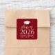 Seal your envelopes and graduation favour bags with these modern graduation stickers! The stickers feature a white graduation cap at the top of the design with "Class of 2025" displayed in bold lettering on a burgundy background. Personalise the burgundy graduation sticker with the graduate's name, school, and graduation year. This design is perfect to use for high school or college graduations.