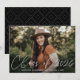 Celebrate the grad with our modern class of 2025 graduation announcement. The graduation announcement displays the graduate's photo with "Class of 2025" in a white modern calligraphy script overlay. Personalise the front of the modern graduation announcement by adding the graduate's name, school name, and graduation year. The announcement reverses to feature a trendy black and white dotted geometric pattern. The design is perfect for both high school and college graduates.