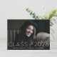Invite family and friends to celebrate your graduate with these modern Class of 2026 graduation party invitations, designed with a clean and timeless look. The front of the invitation features your favourite photo paired with “Class of 2026” displayed in a simple white font, complemented by elegant calligraphy script for a refined finish. Personalise the invitation with the graduate’s name and school to create a meaningful and stylish announcement. The back of the invitation displays your graduation party details in black text against a solid grey background, which can be customised to your preferred colour. Perfect for both high school and college graduations, these photo graduation party invitations offer a polished way to celebrate the Class of 2026.