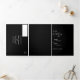 This modern classic black tri-fold wedding invitation is perfect for your elegant modern wedding. This design features white simple calligraphy off set on a dark black background to match your classic traditional wedding or minimalist boho wedding in the spring, summer, fall, or winter. Please feel free to reach out to us with any questions about this design.