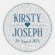 The sticker is made on wonderful paper and had no problem sticking to the bag that I purchased to put it on. I wanted to find a design that would be cute for the bride and groom and this one fit the bill as it has cute "bees" buzzing around and the wedding was taking place in a town called "Bee Cave". The packaging was great and protected the stickers. The website is easy to navigate and there are so many color choices. I had no problem finding a color that the bride was using on everything else selected. The design was adorable and there were many to choose from. You can make the figure as larger or smaller and you can place the photo and writting whereever you want to in the sticker. The printing is fabulous..better than expected.
