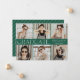 Celebrate your graduation with this modern minimalist announcement featuring a 6-photo collage and "Graduate" in sleek white lettering on a stylish green background. Personalise with your name, school, and graduation year to create a unique and memorable keepsake. The back showcases a contemporary green and white diagonal line pattern for a polished touch. Perfect for both high school and college graduates, this multi-photo design is a sophisticated way to share your achievement with family and friends.