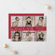 Celebrate your achievement with this minimalist graduation announcement featuring a stylish 6-photo collage and "Graduate" in sleek white modern lettering on a bold crimson red background. Personalise with your name, school, and graduation year to create a unique keepsake that beautifully shares your milestone. The back showcases a chic crimson and white diagonal line pattern for a contemporary touch. Perfect for both high school and college graduates, this multi-photo design is a modern and memorable way to announce your graduation to family and friends.