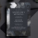 A modern minimalist bachelor's weekend invitation - or change the text and make it a bachelor's party invitation card - modern, yet classy! Featuring a digital art painting in the style of fluid ink, abstract flowing shapes in shades of black, dark blue, grey and white. The perfect choice for a classy groom and gentlemen.