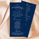 Modern Classy Elegant Wedding Ceremony Program card. It is designed with scroll accent that can be personalised with custom/ personalised text for your bridal party, ceremony details, memorial notes and thank you message, in Navy Blue.