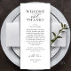 Introducing the perfect finishing touch to your wedding reception - our elegant classy Wedding Thank You Place Setting Card black and white theme, with card title "Welcome and thanks" ! Designed to express your heartfelt appreciation for each guest's presence on your special day, these cards are the ideal way to add a personal touch to your dinner tables. These place setting cards are easy to use - simply place one on top of each dinner card to create a beautiful and thoughtful presentation. Not only will they make your guests feel appreciated, but they will also add a touch of sophistication to your reception.