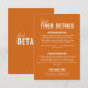 Simple and stylish retro colourful wedding guest info details. With peachy background and orange layout with whimsical wordings. All the info are customisable as website, transportation, accommodation . Grab it along with other products from this classy hand made retro wedding suite.
