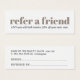 Simple MINI referral card for beauty related professionals. Trendy cool design, fully customizable.