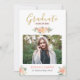 Modern Clean Coral Peach Floral Photo Graduation Announcement Card.