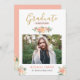 Modern Clean Coral Peach Floral Photo Graduation Announcement