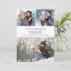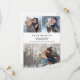 This modern and clean save the date card features a photo collage consisting of 2 square photos and 1 horizontal photo. Personalise with the names of the couple and their upcoming wedding date and location.