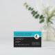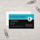 Unique cleaning service business card template in a modern design in attractive blue, black, and white colour scheme with cleaning service emblem that displays a cleaning professional you can use on the card for reprinting here on our site.