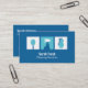 A modern business card with icons of cleaning supplies such as toilet brush, spray bottle and gloves. Blue and white chosen to communicate a clean and sterile vibe. You can change the background color to suit your business color. Perfect for those in the house cleaning services! Personalize easily with your business details in the text templates provided.