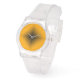 Featuring a sleek design, this unisex timepiece offers a clean 3D effect black and orange with simple, minimalist hands and a comfortable clear strap.