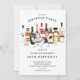 Unique Cocktail birthday Party invitation featuring a watercolor cocktails with liquor bottles set on a white background with a coordinating back.