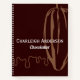 This product design features illustrations of a cocoa pod and melted chocolate. Unique simple modern chocolate recipe notebook for chocolatier or chocolate shop owner.
