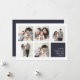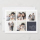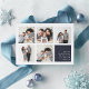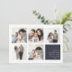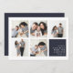 Modern Hanukkah photo collage card features five square photos in a grid layout, with your personal holiday message and names in white on dark navy blue at the lower right. Simple and minimal Hanukkah design that shows off your favourite photos.