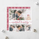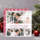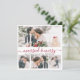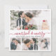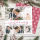 Elegant Modern Calligraphy White and Red 4 Photo Collage Married and Merry Christmas Card. This mimimalist festive newlywed christmas card features four (4) grid photo collage and „Married and Merry” greeting text which is written in a beautiful hand lettered swirly swash-tail font type in red and white. On the reverse side pretty snowy snowflakes in red and white. Pretty greeting cards easy way to send greetings to family and friends for your first Christmas as husband and wife in Christmas Holiday season.
