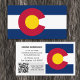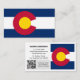 Business Cards: Modern Colorado business card featuring flag of Colorado on one side and your details together with scannable QR Code, small Colorado flag on the other side. Easily customise link in QR Code for your website or mobile number, personalise name, address details or change flag on the side for your company logo, personal photo or any other image. Make it your business or just card for moving house.