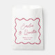 Wedding favor bags to match our Wavy Frame Retro Wedding collection. This design features the couple's names in chic script calligraphy and the text "thank you" framed by a hand-drawn wavy border. Edit the wording to fit your personal style and theme. Perfect for filling with sweet treats, small gifts, or other favors for your guests to take home. View the collection linked on this page for the full wedding suite. Feel free to message me with any questions, I'll be happy to help!