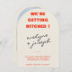 This wedding invitation is perfect for your wedding if you are looking for an elegant unique and easy editable arched invitation .An elegant unique simple minimalist cream wedding template invitation. Which features plain beige creamy background. And black hand lettered bride's and groom's first names and orange text layout of we're getting hitched. and customizable arch photo in the back . Affordable and it is also digital electronic e-invitation if you want to send it by text or email. All the info are customizable by clicking on the personalize button. So Grab it and make it yours so you make you invites engaged and excited .