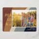 A modern holiday colour block card in earthy colours The header that reads "Peace, love and joy" in gold foil.. Personalise with your favourites 2 pictures, a header of your preference, and your family name.
