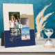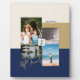 Capture your special moments with this modern photo plaque. This custom photo collage plaque features stylish colour blocks and typography with a navy blue & gold colour theme. Replace these 4 photo collages with yours and personalise the text with your family name and initials.