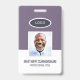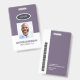 A modern and simple badge that does not distract from the important details. Easy to read from afar. Add a custom logo and company details. Add the employee's name, photo, and professional title. The bar of colour can be modified to match the company's official colours. At the back, add more information such as return address and the employee's ID number. Perfect for oval shaped logos.