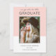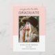 A graduation announcement with contemporary style, this design features a blush pink and white colour block background with a thin soft grey frame surrounding your vertical portrait. A text template in crisp modern type face is ready to personalise with the graduate's name, class year and school. Load your desired photo in place of the sample photo shown in this announcement card. This feminine versatile design works well for graduates from high school, college or university.