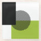 This trendy modern geometric design features large rectangular colour blocks in lime green, black and white, complemented by a black striped circle.