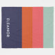 A modern geometric colour block striped design in a bold colour palette of teal, red, dark pink, and navy blue, personalised with your name.