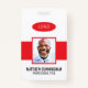 A modern and simple badge that does not distract from the important details. Easy to read from afar. Add a custom logo and company details. Add the employee's name, photo, and professional title. The bar of colour can be modified to match the company's official colours. At the back, add more information such as return address and the employee's ID number. Perfect for oval shaped logos.