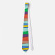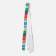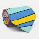 A tie for fans of bright colours, with a modern abstract pattern of zigzag blocks of colour edged with a black outline. Colours include shades of light and dark blue, yellow, orange, beige, green and purple.