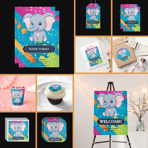 Celebrate in style with this charming baby shower design starring a sweet blue elephant with rosy pink ears, set against a vibrant backdrop of playful patterns. Ideal for baby boys or neutral-themed showers, this cheerful artwork is perfect for party decorations, printables, or baby shower keepsakes. If you need any other matching product or customisation, kindly message via Zazzle.