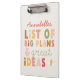 Modern colourful bold typography plans and ideas fun clipboard. Ideal Christmas, Birthday, New school year, Business or teacher gift.