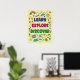 Brighten any child's space with this modern wall art. It showcases a colourful doodle sketch design with an inspirational typography quote to encourage a growth mindset. The uplifting affirmations promote positivity and motivation, perfect for kids who love to dream big. This playful yet meaningful decor adds a touch of joy and encouragement to any bedroom, playroom, or classroom. It's an ideal gift to inspire confidence and self-belief in young minds.
