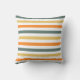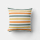 Modern fall themed throw pillow featuring horizontal stripes in white, yellow, orange and dark green shades.