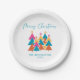 Modern Colourful Festive Christmas Trees Typograph Paper Plate