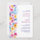 Celebrate love in full bloom with this colourful floral wedding invitation. Adorned with pink, yellow, blue, and purple blossoms, this beautifully designed invitation is perfect for inviting friends and loved ones to witness the joyful beginning of your lifelong journey together. Elegant, cheerful, and full of heart, it sets the perfect tone for a celebration to remember. Designed for the budget-savvy couple, the reception venue location, RSVP response request, accommodation details, and any other information your guests may require can be included on the reverse side of this invitation, saving money on extra stationery. A variety of paper types and corner styles are available for your unique invitations, along with the option to download if you prefer a digital format.