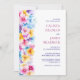 Celebrate love in full bloom with this vibrant floral wedding invitation. Adorned with pink, yellow, blue, and purple blossoms, this beautifully designed invitation is perfect for inviting friends and loved ones to witness the joyful beginning of your lifelong journey together. Elegant, cheerful, and full of heart, it sets the perfect tone for a celebration to remember. The customisable text allows you to effortlessly add the bride and groom’s names, wedding date, and the necessary details of your celebration. A variety of paper types and corner styles are available for your unique invitations, along with the option to download if you prefer a digital format.