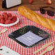 Modern colourful fireworks black birthday paper plates with a fireworks background.