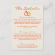 Simple and stylish retro colourful wedding guest info details. With funky creamy background and orange text layout with whimsical wordings. And hand drawn wedding rings and hand written details info. And pink funky background with orange whimsical text on the back. All the info are customisable as website, transportation, accommodation . Grab it along with other products from this classy hand made retro wedding suite.