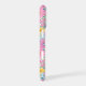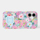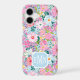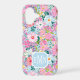 Customise this gorgeous modern colourful flower garden of flowers in pink, blue, purple and yellow iPhone 17 case with your your initials in a modern CAP font in white on blue. It's so vibrant and happy!