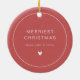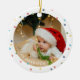 Festive modern colourful lights with one large favourite photo and san serif font holiday ceramic ornament.